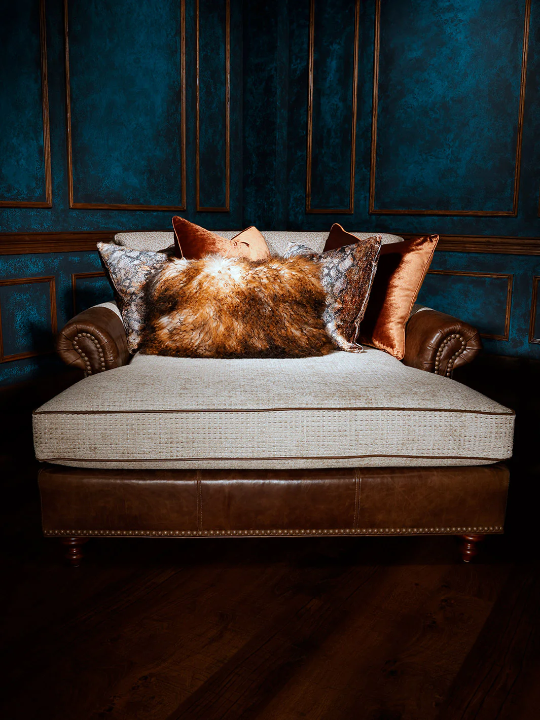 Settle into comfort when you add the Country Comfort Western Chaise Lounge to your living space. This chaise lounge is sophisticated and stylish, featuring an elegant look with a fabric and leather combination. Delight in durable and long-lasting comfort every time you sit down.