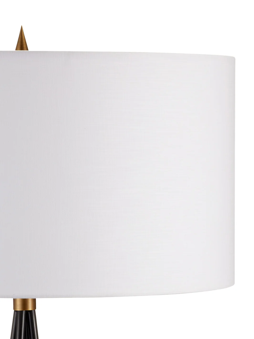 Sculptural and refined, the Fiction Bronze and Brass Floor Lamp brings striking geometry to your space. Crafted with an open pyramid metal frame in a rich bronze finish, it's cinched with an antique brass ring for a bold contrast. An off-white linen shade and a pointed brass finial complete the look, offering a sophisticated balance of modern rustic and Western elegance.