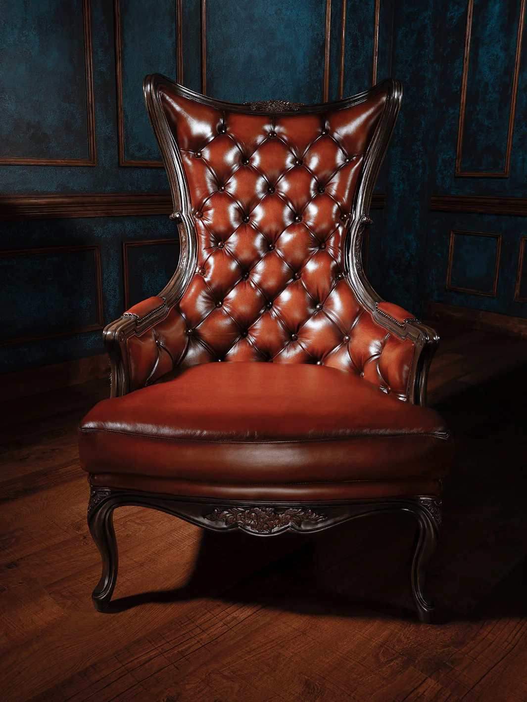 The Western Spirit Accent Chair is the perfect combination of stylish comfort and distinctive detailing. Crafted from luxurious leather with tufted buttons and detailed with cowhide accents, this wingback chair is ideal for any home. Enjoy indulgent comfort and timeless style.